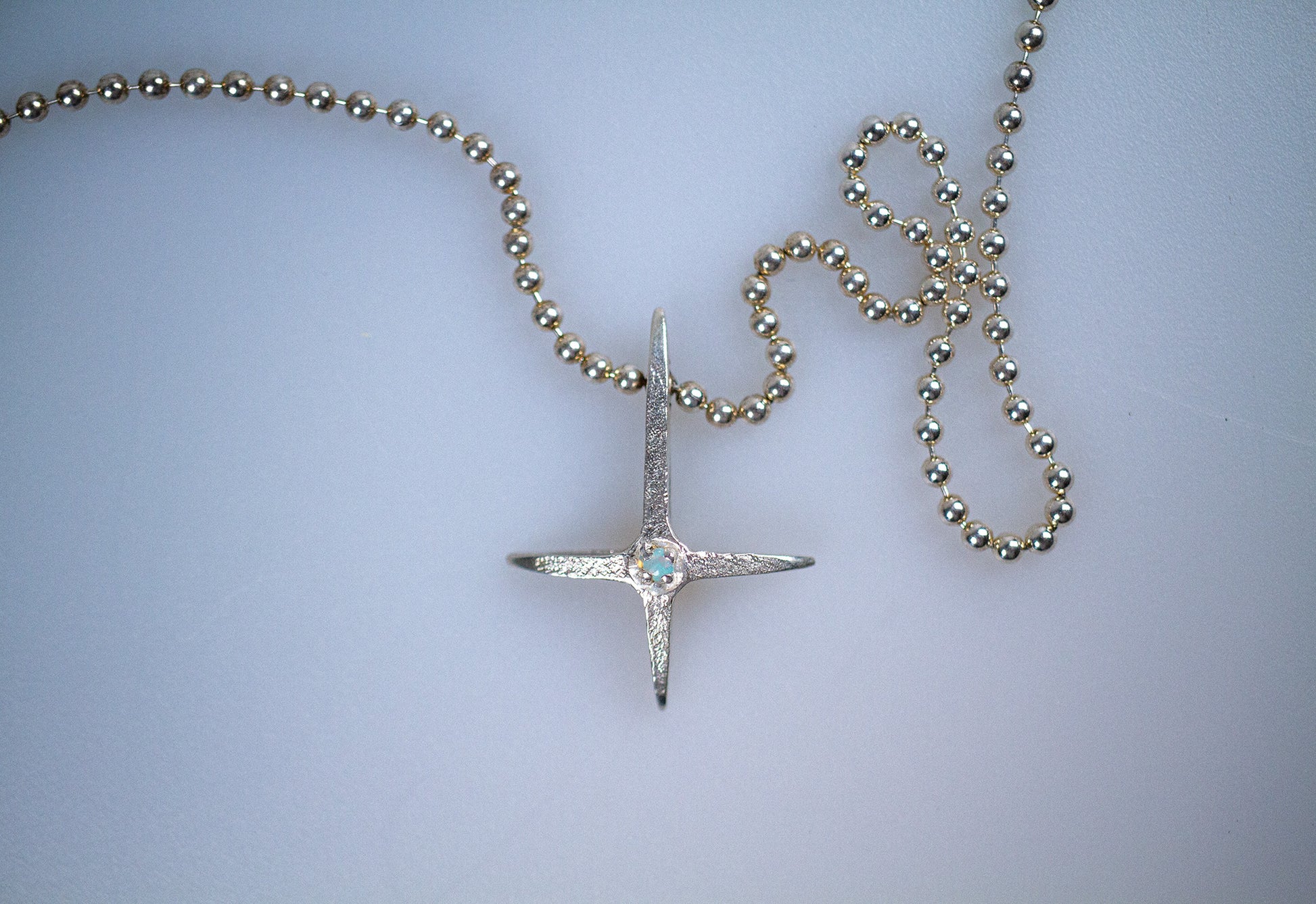 Recycled Sterling silver, natural gemstone, ball chain.